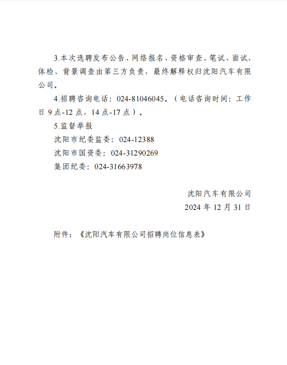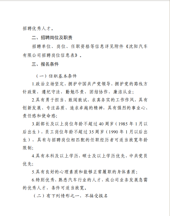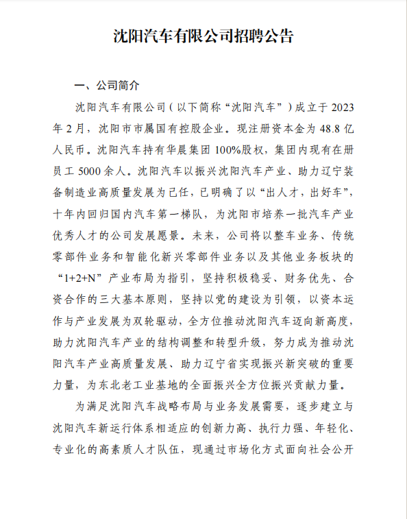 沈阳汽车有限公司招聘公告