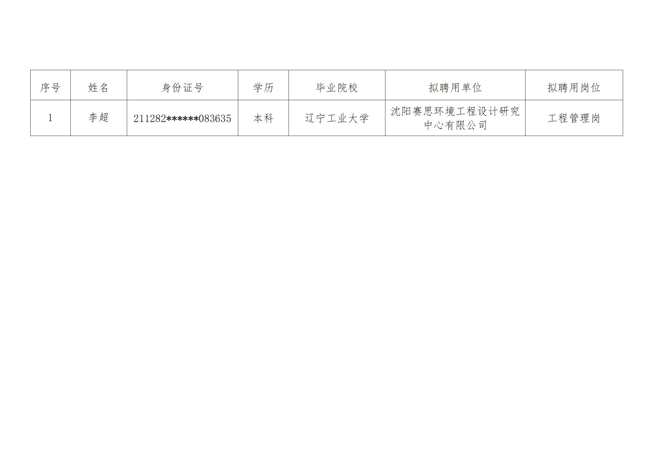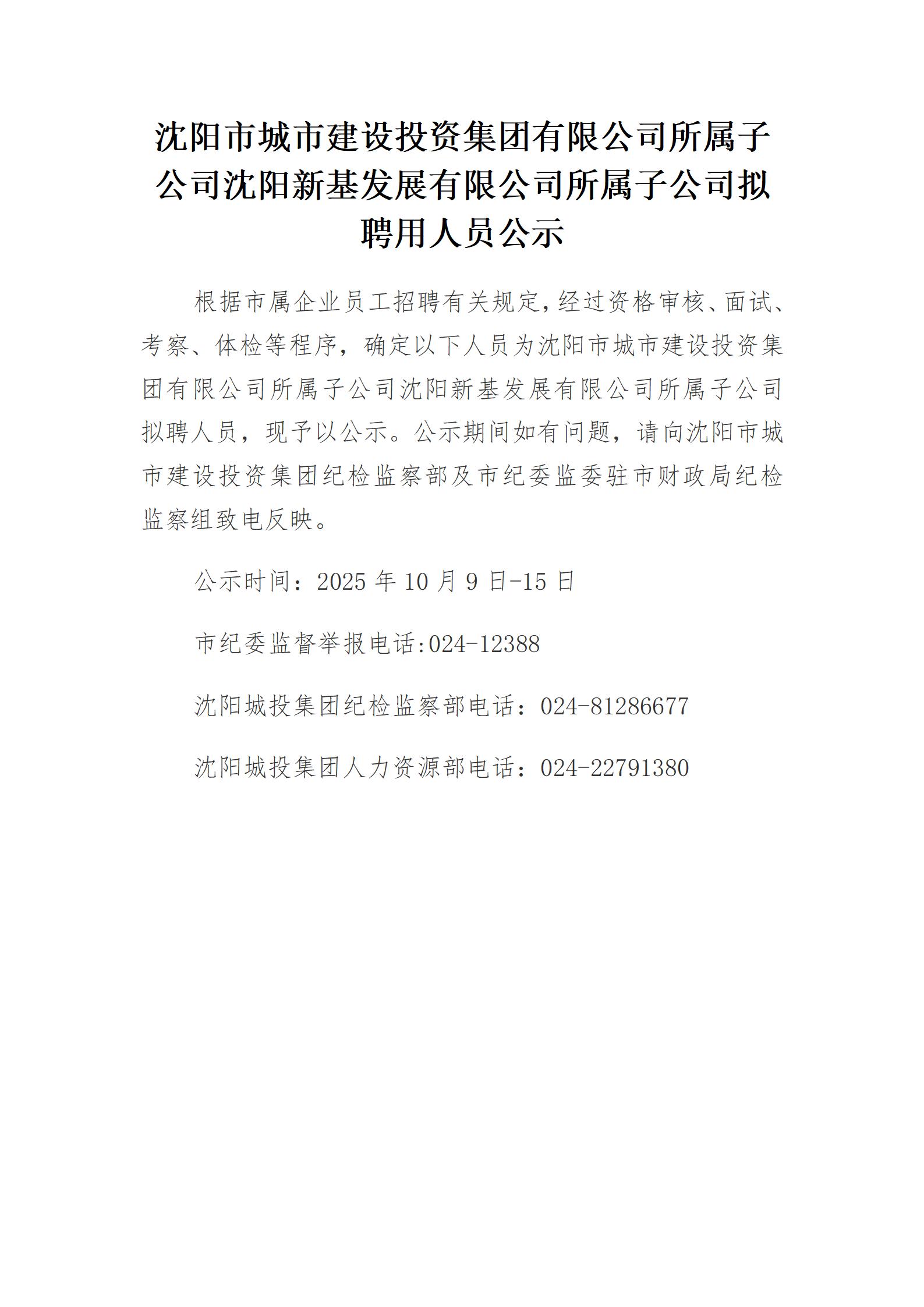 沈阳市城市建设投资集团有限公司所属子公司沈阳新基发展有限公司拟聘用人员公示