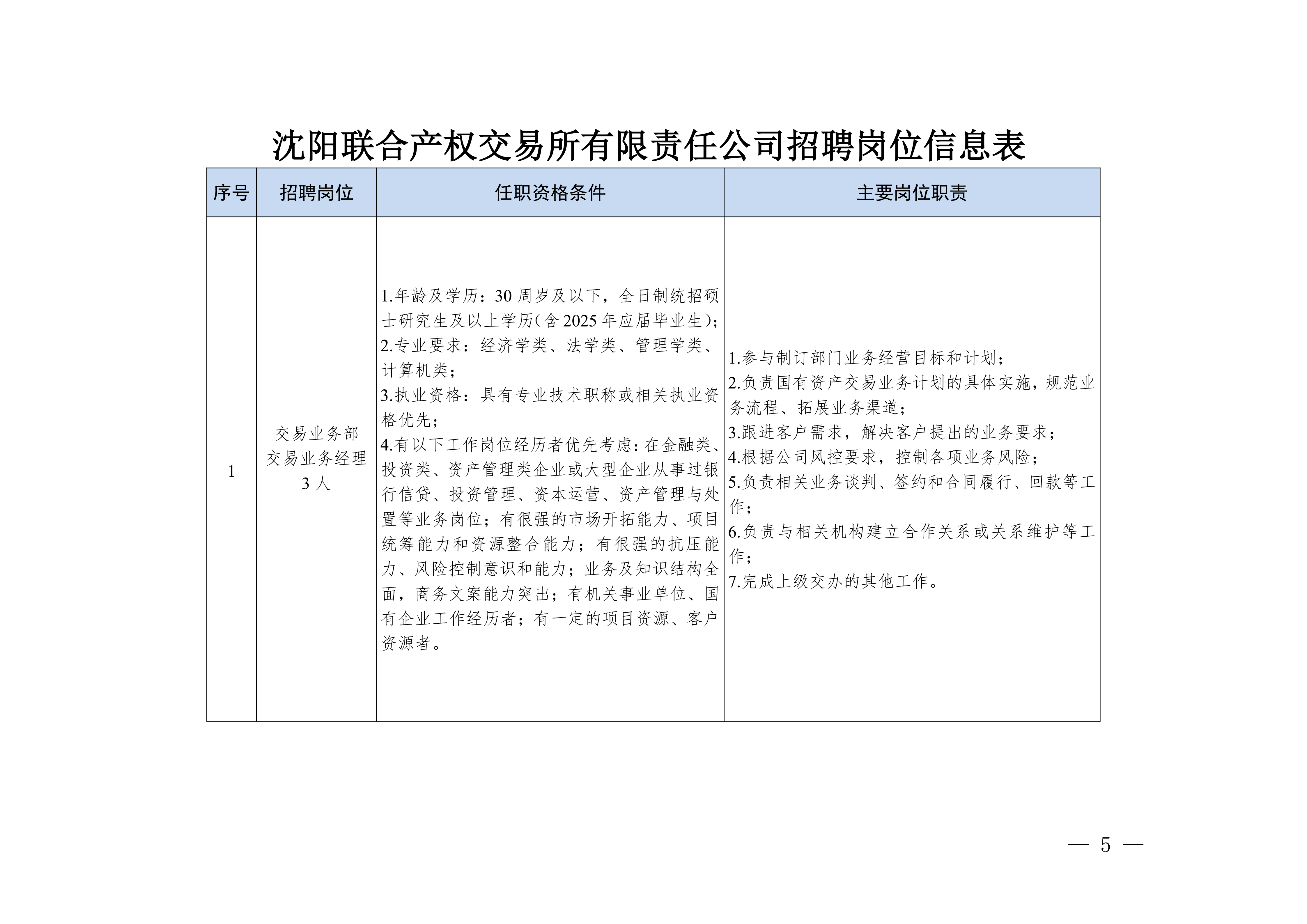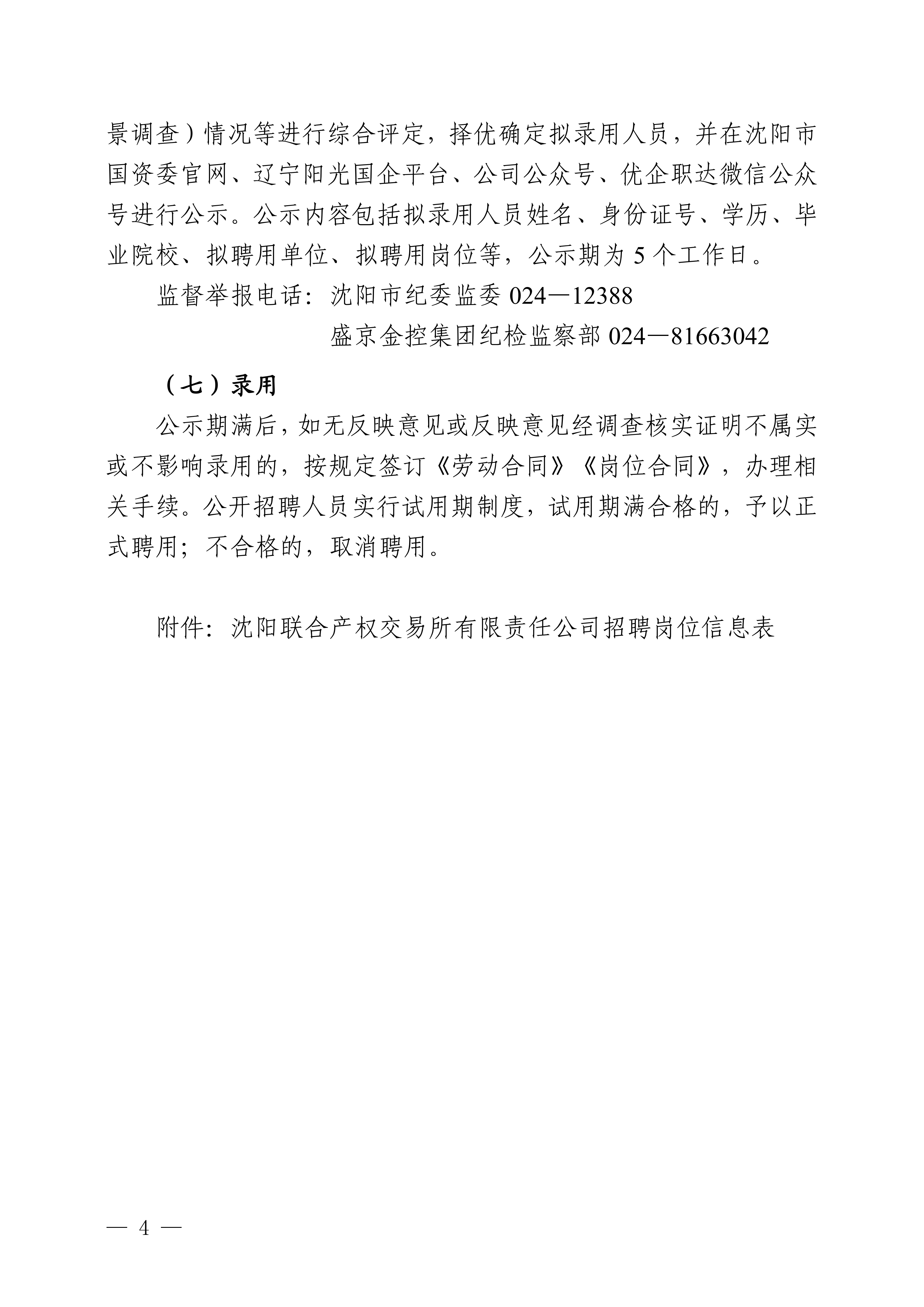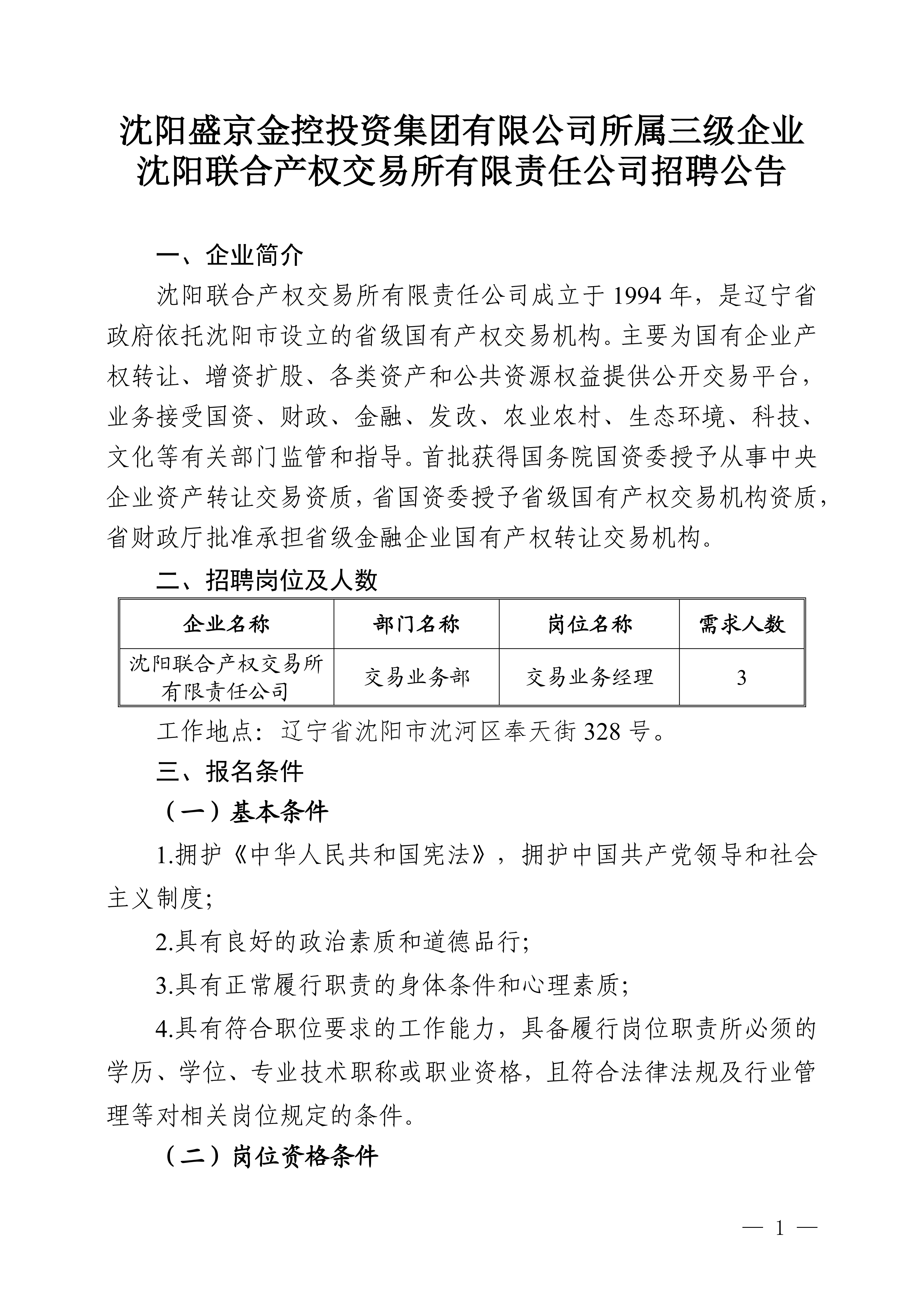 沈阳盛京金控投资集团有限公司所属三级企业沈阳联合产权交易所有限责任公司招聘公告