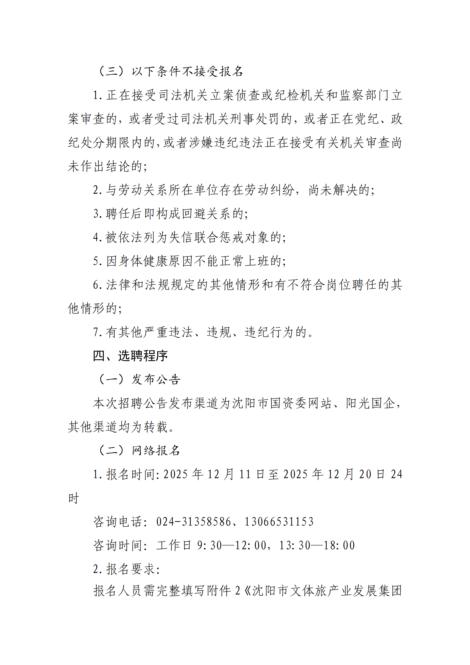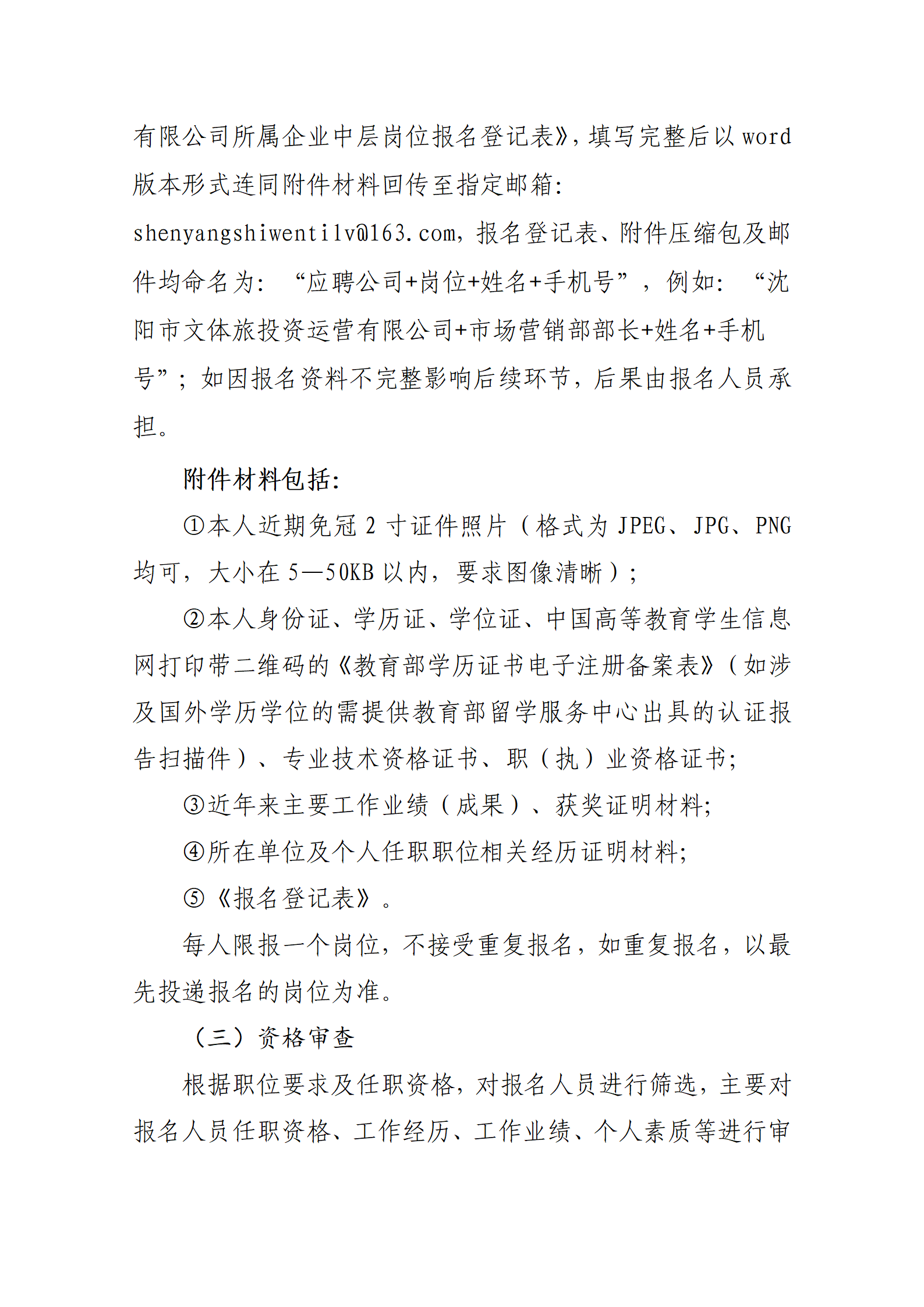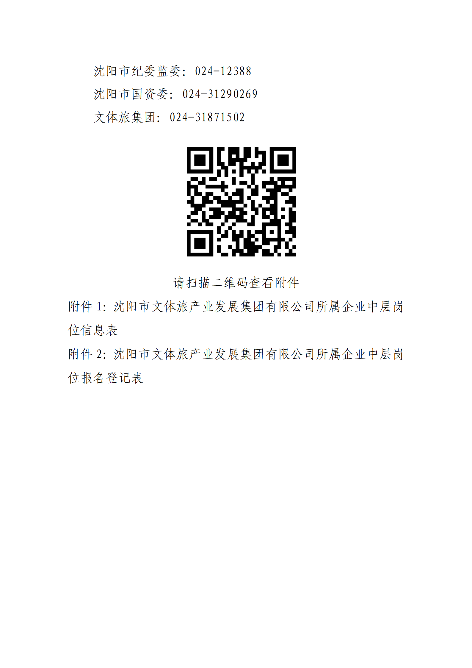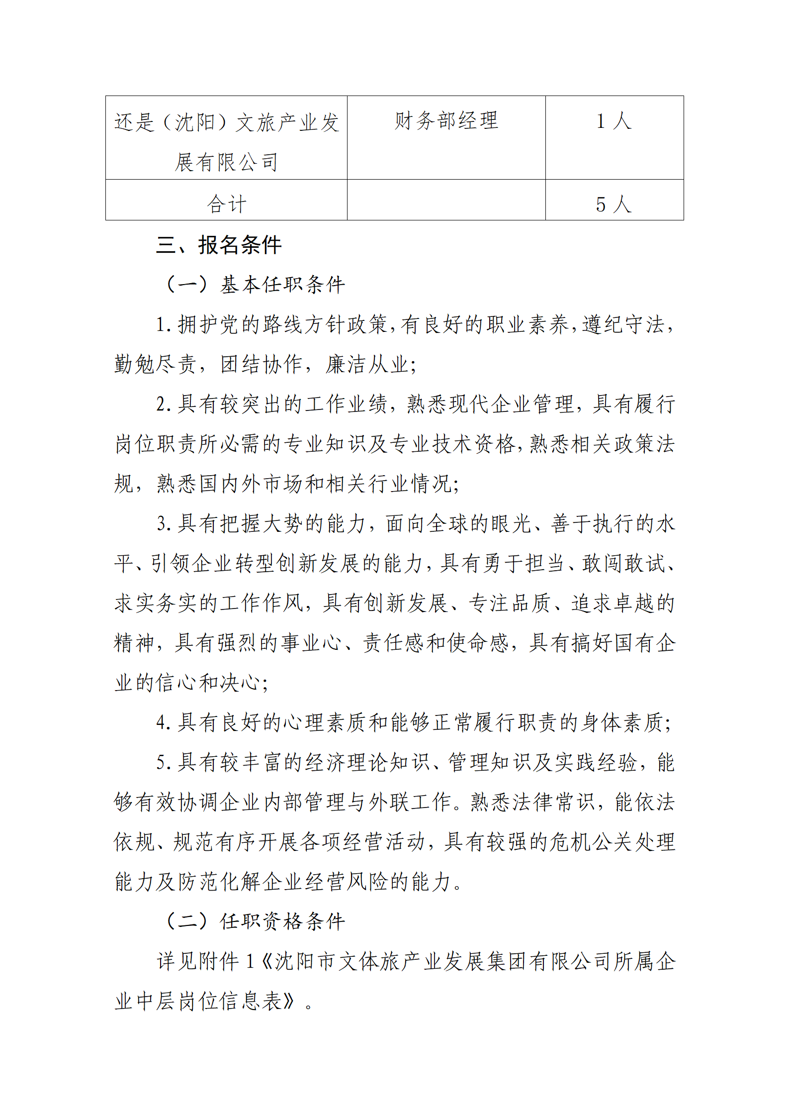 沈阳市文体旅产业发展集团有限公司所属企业中层岗位招聘公告 文章来源:沈阳市国资委 发布于:2025-12-11 附件1:沈阳市文体旅产业发展集团有限公司所属企业中层岗位信息表.xls附件2:沈阳市文体旅产业发展集团有限公司所属企业中层岗位报名登记表.docx