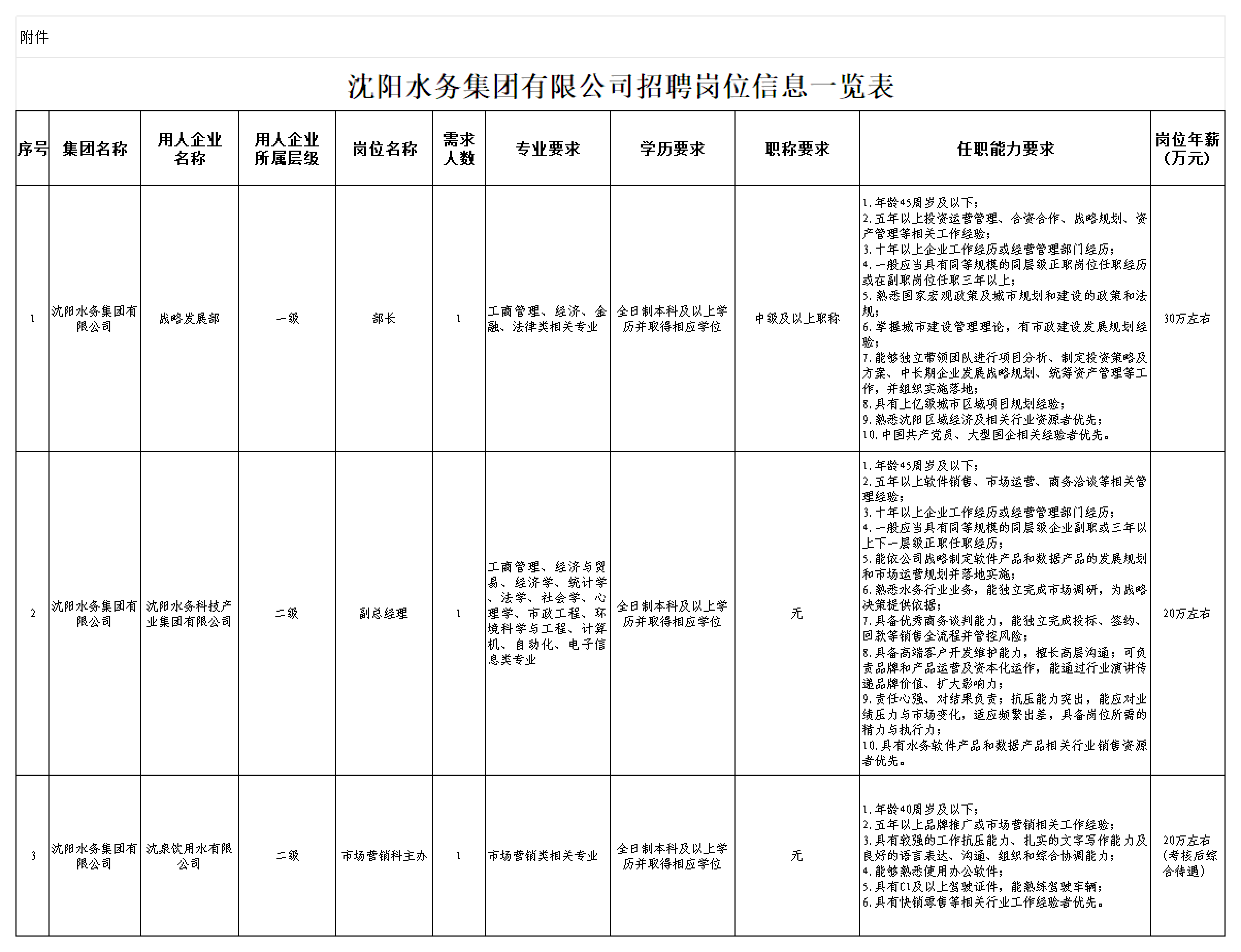 沈阳水务集团有限公司招聘公告(管理岗)