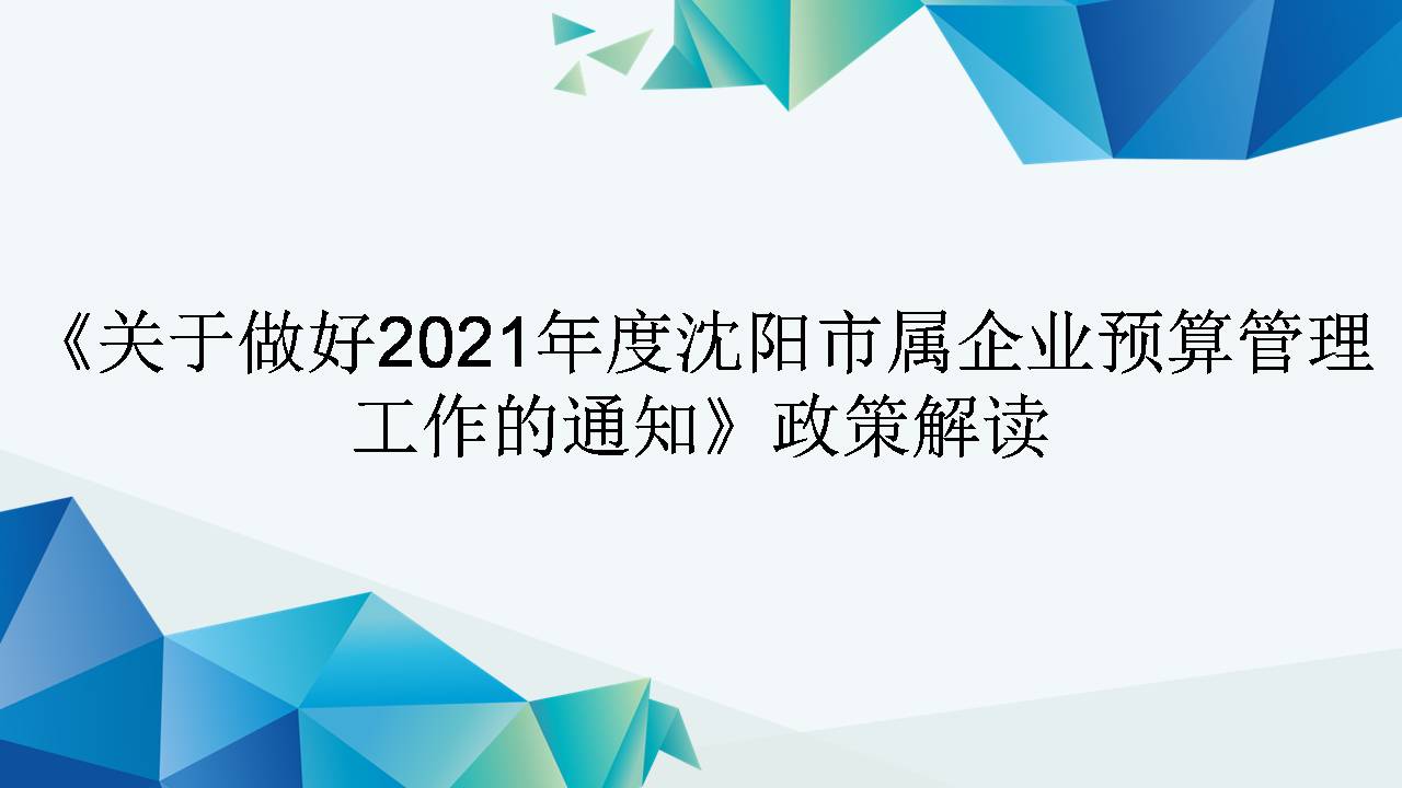 《关于做好2021年度沈阳市属企业预算管理工作的通知》政策解读(图解)